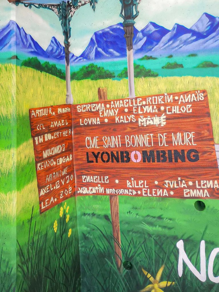 En 2021, la ville de Saint-Bonnet-de-Mure cherchait une façon originale d’embellir le mur du préau en face de sa salle des fêtes municipale. Mais plutôt qu’une simple peinture, la mairie voulait une création participative et impactante. C’est ainsi que notre collectif de graffeurs professionnels, LB Studio, a été contacté pour réaliser une fresque graffiti ludique qui marquerait les esprits…