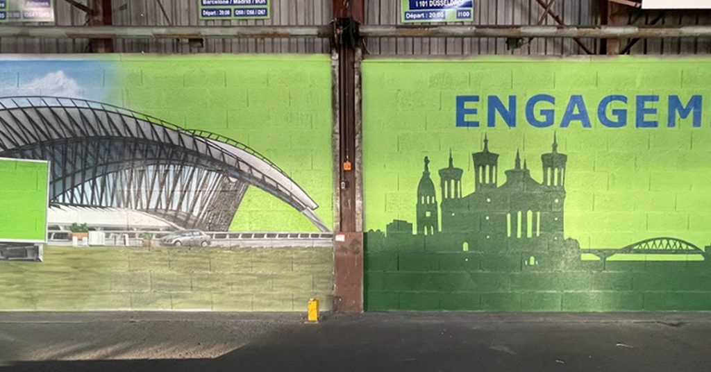 Mais ce n’est pas tout ! Ce projet a aussi été couronné par un atelier team building avec les salariés de l’entreprise. En effet, ces derniers ont pu mettre la main à la pâte pour compléter le logo, faisant de cette fresque un projet collectif unique…