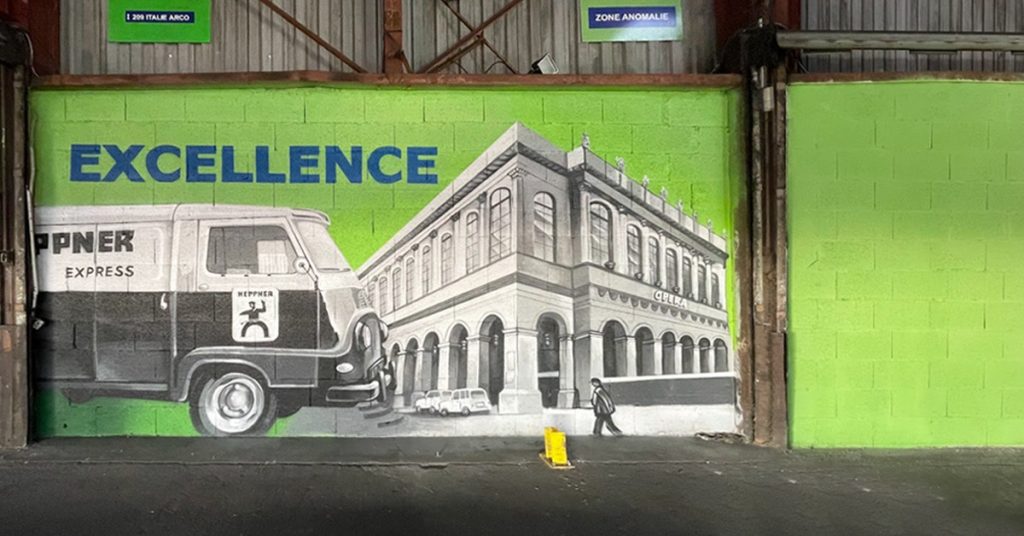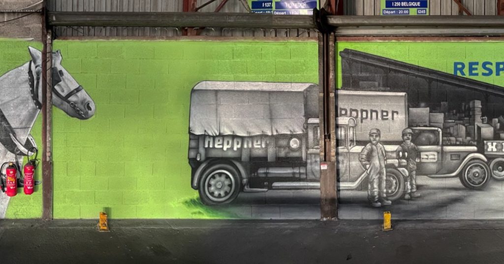 En septembre 2023, LB Studio a relevé un défi artistique de taille : réaliser une fresque sur l’histoire de l’entreprise Heppner, un leader du transport et de la logistique. L’objectif de ce projet était tout d’abord de transformer l’entrepôt de Saint-Priest avec une œuvre monumentale de 120 mètres de long, mettant en valeur l’histoire de l’entreprise.